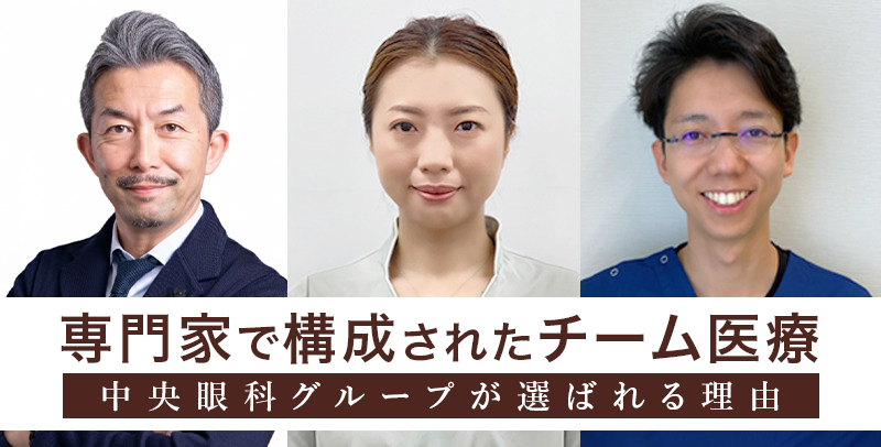 中央眼科グループでは、眼科専門医はもちろんのこと、患者対応のエキスパートである医療コンシェルジュと国家資格である視能訓練士・看護師が、日々の医療に携わっています。